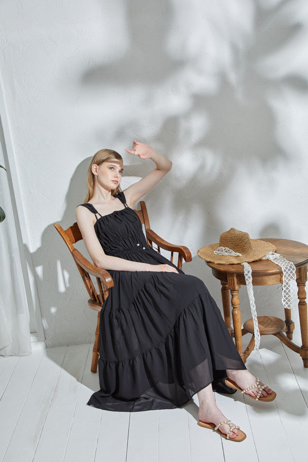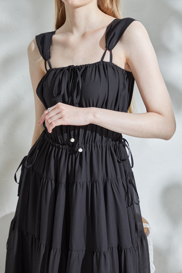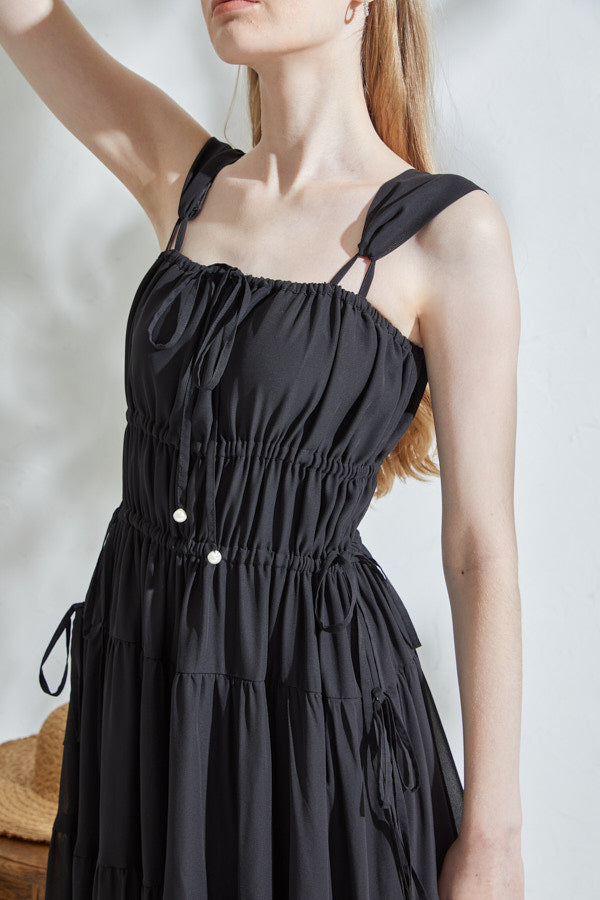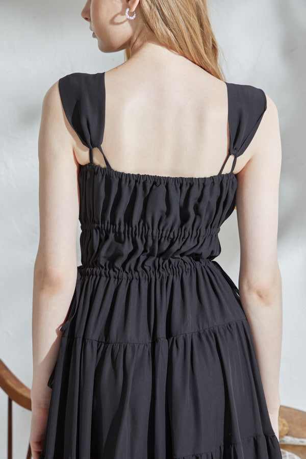 調節可能なウエスト部分の仕様でシルエットを変えて楽しめるドレスは、取り外し可能なバストパット付き。