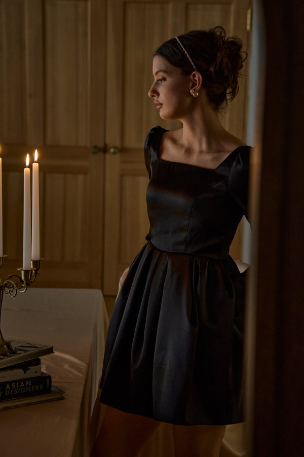 ほどよい厚みと美しい光沢を備えたサテンがフォルムを凛と保ち、立体的なシルエットに上質な陰影を描きます。