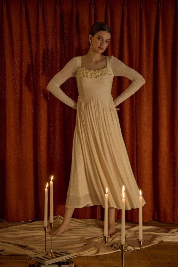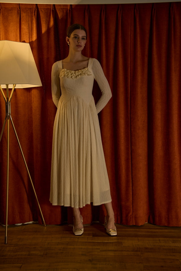 一枚で華やかさと上品さを備え、日常から特別なシーンまで寄り添う一着。